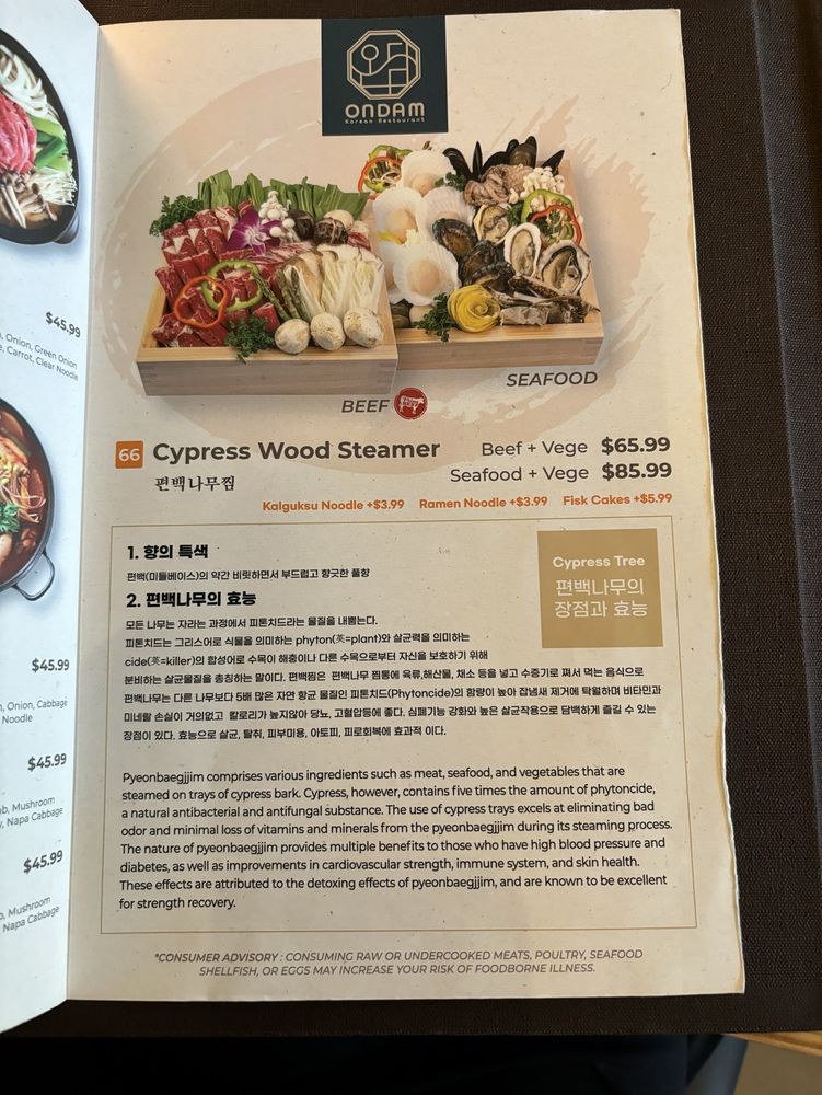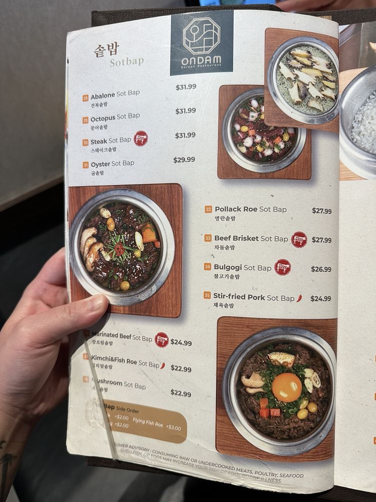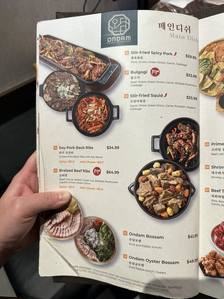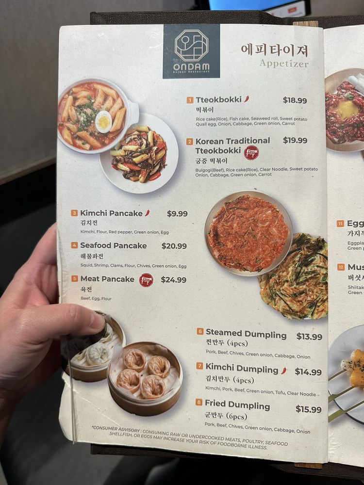 Ondam, a Korean restaurant located in Santa Clara, CA, offers a wide range of dishes with many vegetarian options. Known for their flavorful and authentic Korean cuisine, Ondam provides a casual yet classy dining experience with wheelchair accessible facilities and a gender-neutral restroom. The menu features traditional Korean dishes such as Tteokbokki Rice cake, Bulgogi, and Kimchi Pancake. Notable main dishes include StirFried Spicy Pork and Bulgogi. The Jeongol section offers flavorful options like Bulgogi Jeongol and Dumpling Jeongol. Ondam's commitment to sustainability is evident through their option to bring your own container and provide reusable tableware. With amenities like outdoor seating, Wi-Fi, and drive-thru service, Ondam is a must-visit for Korean food enthusiasts looking for a delightful dining experience.